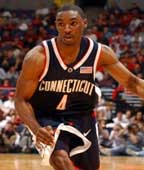 On a 2003-04 Connecticut team that featured six future NBA players, Gordon was a force all season as the Huskies captured its second NCAA tournament title. He led the team in scoring, averaging 18.5 points per game, along with 4.7 rebounds and 4.5 rebounds. Gordon shot the same from two point range as from three - 43 percent-- and could score as well as set up his teammates. A 37 point game with Nevada was a season high, followed by 34 against UMass.